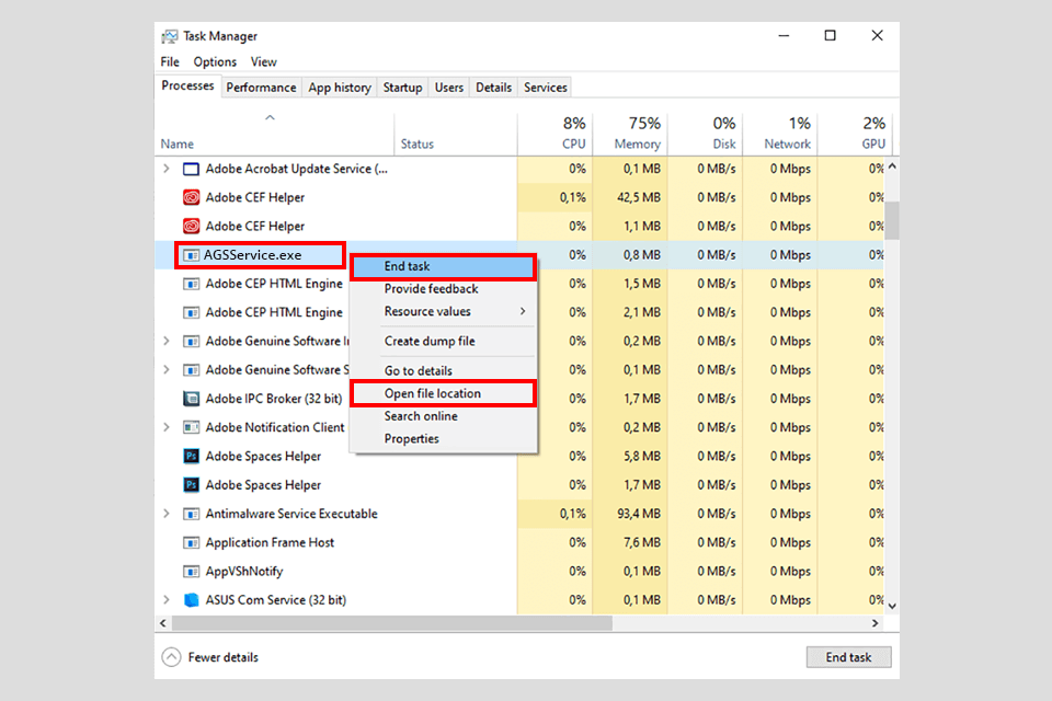 Way №2 – Disable Adobe Genuine Software Integrity Service Via Task Manager
