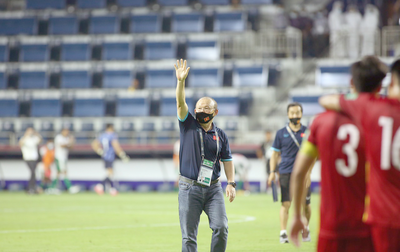 HLV Park hang-seo cảm ơn những người hâm mộ tuyển Việt Nam có mặt trên sân.
